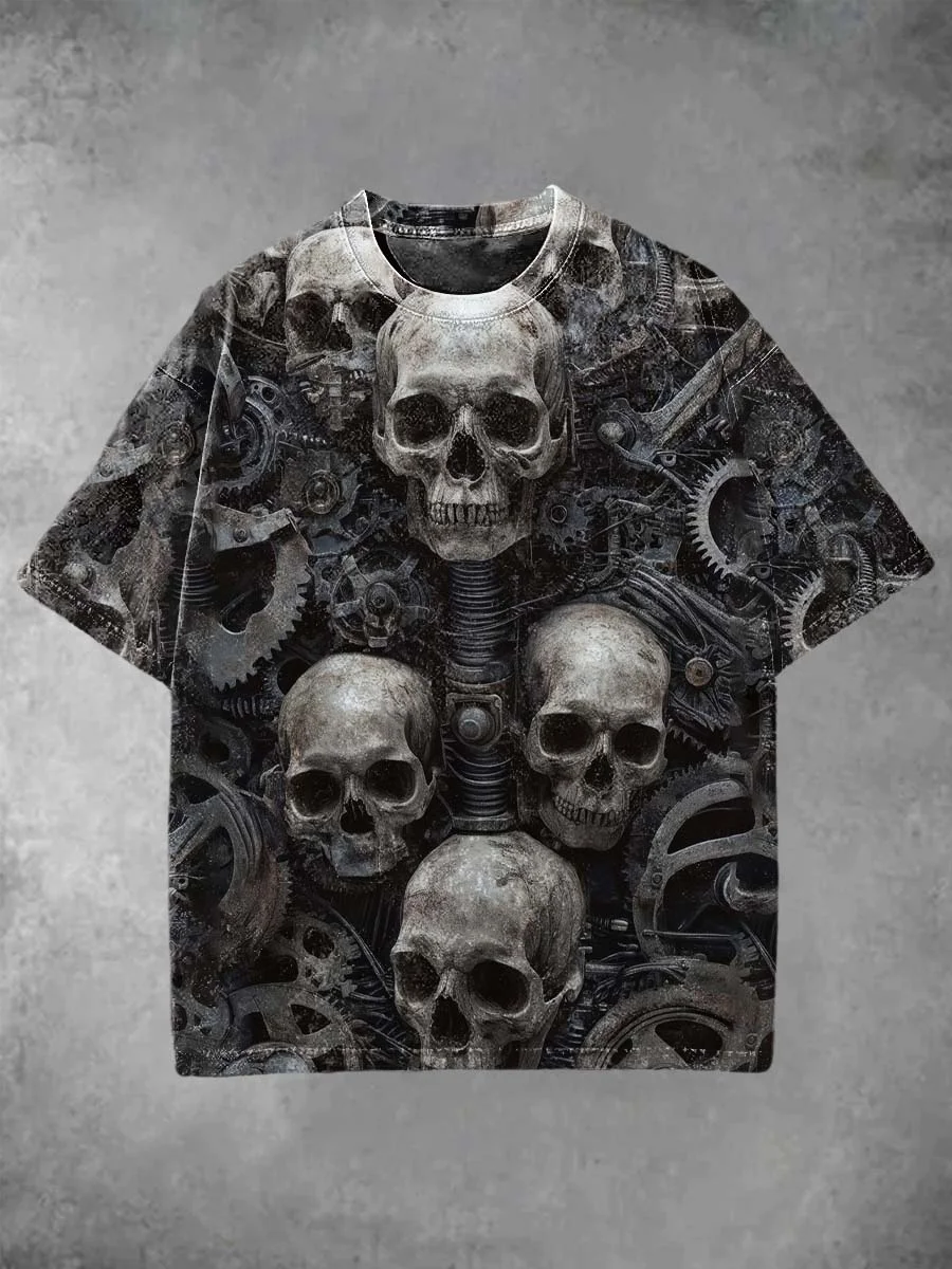 Abstract 3D Mechanical Skull Print Casual Short Sleeve T-Shirt