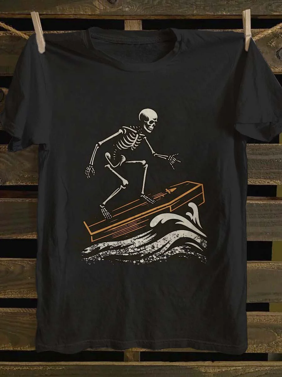 Fun Skull Surf Print Casual Short Sleeve T-Shirt