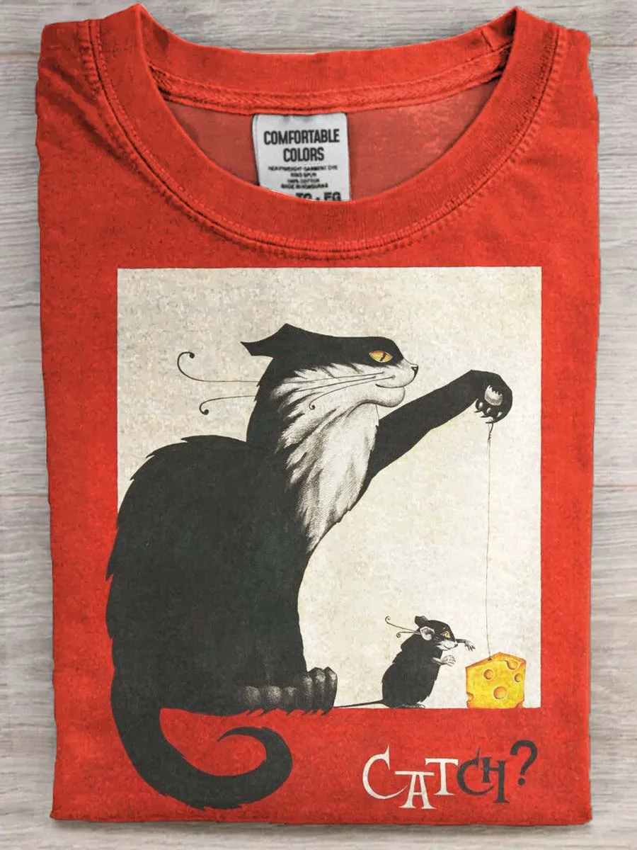 Funny Cat Print Casual Short Sleeve T-Shirt