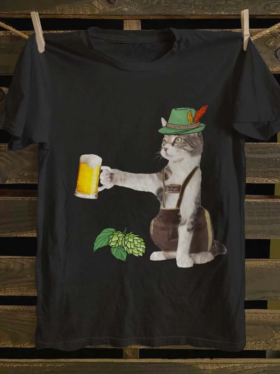 German Beer Day Cat Print Casual Short Sleeve T-Shirt