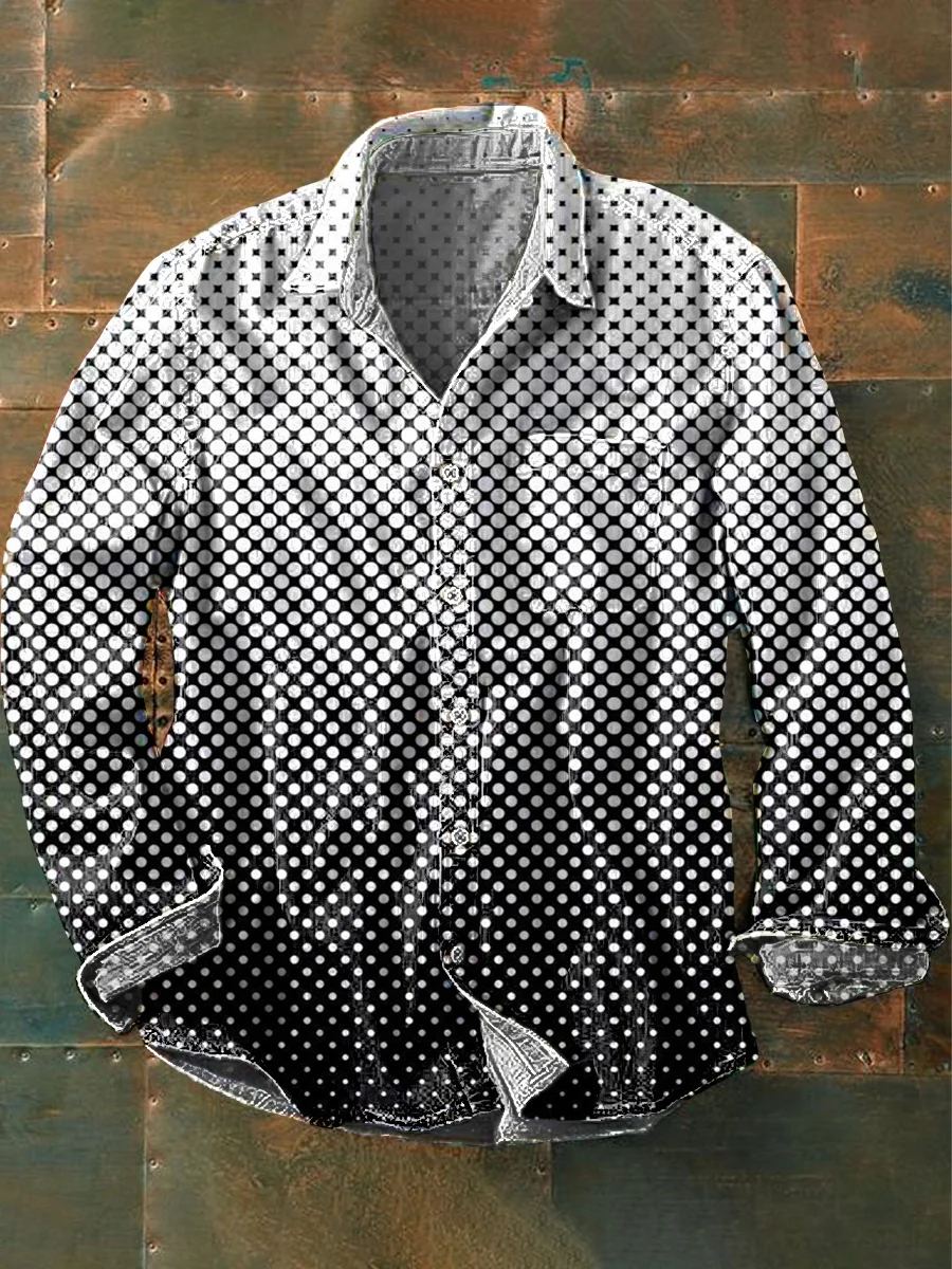 Men's Black and White Combo Dot Check Print Cotton Shirt