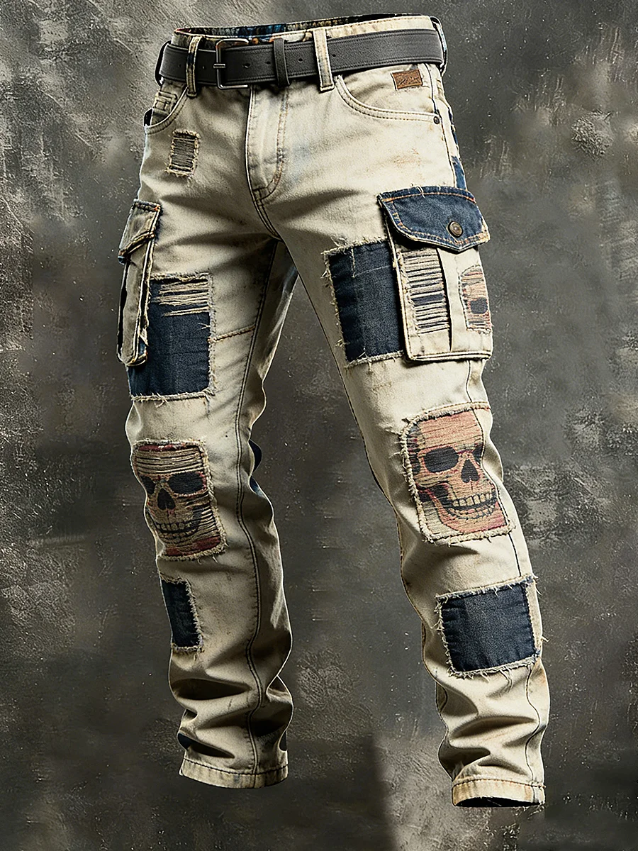 Men's Retro Vacation Business Skull Art Print Casual Workwear Trousers
