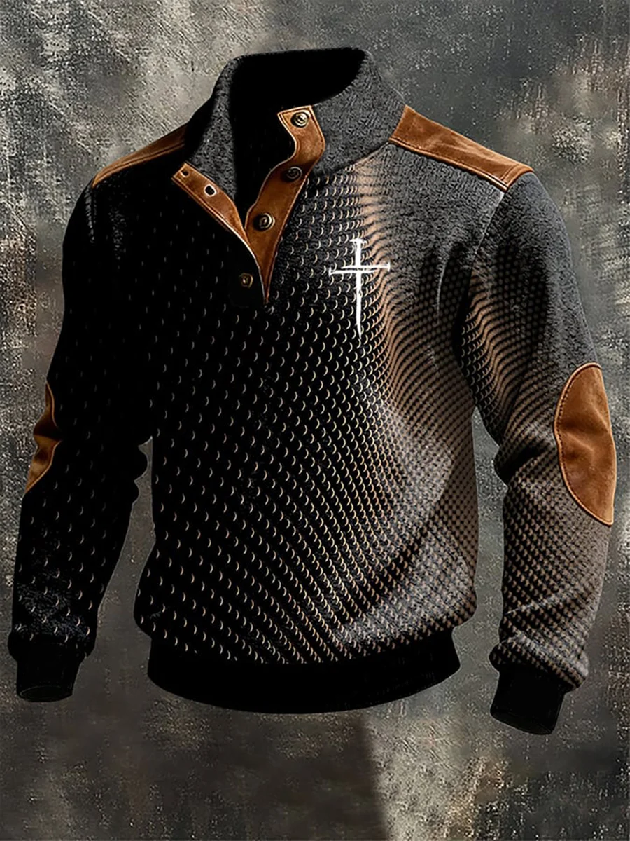 Men's Vintage Faith Cross Print Four-button Hoodie