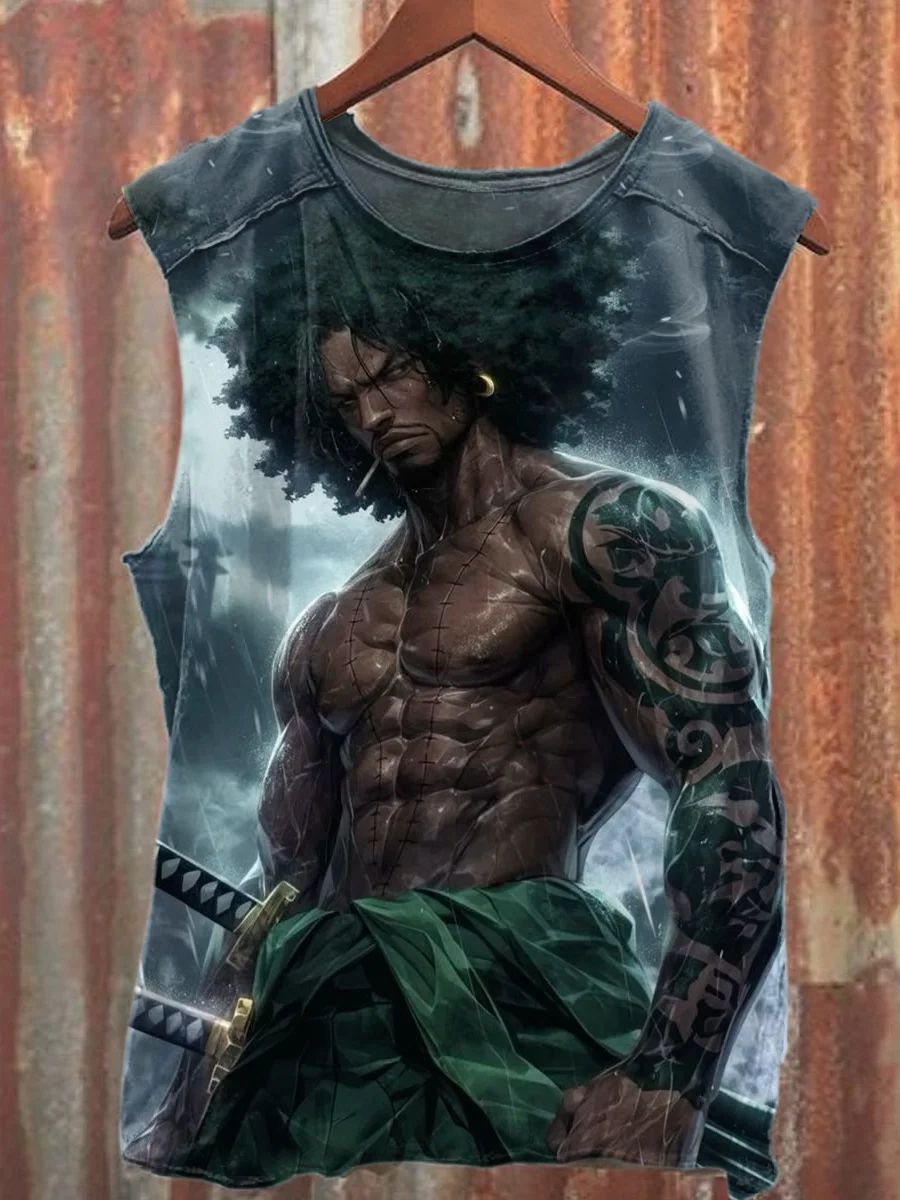 Retro Fashion Black Warrior Art Print Cotton Tank Top