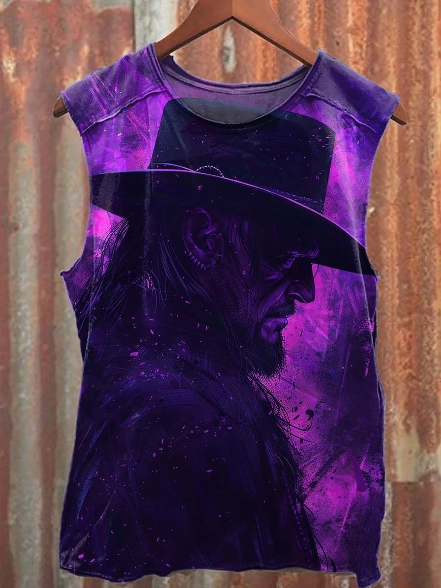 Retro Fashion Wrestling Match Illustration Printed Casual Tank Top