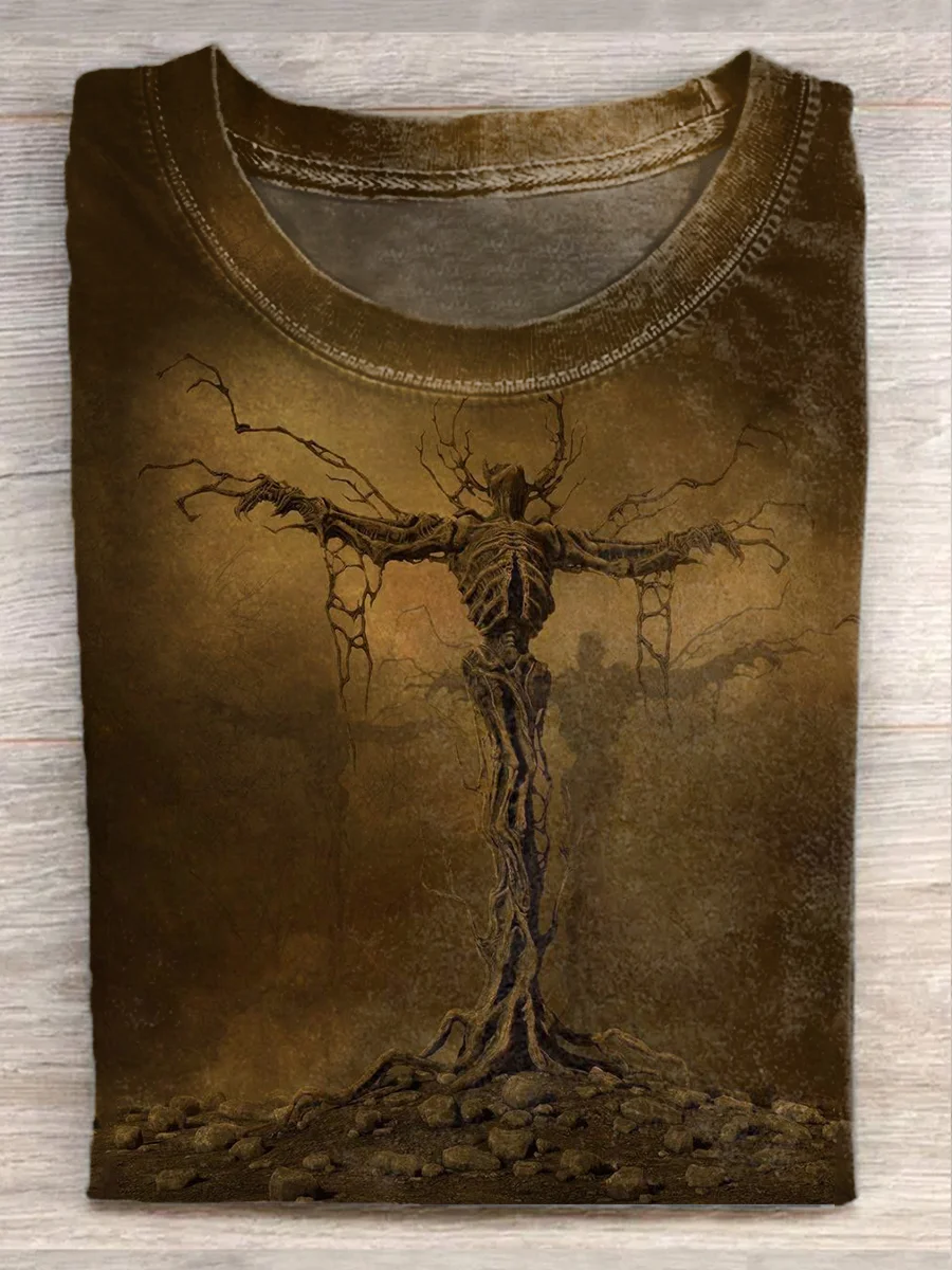 Retro Skull Graphic Illustration Casual Cotton T-Shirt