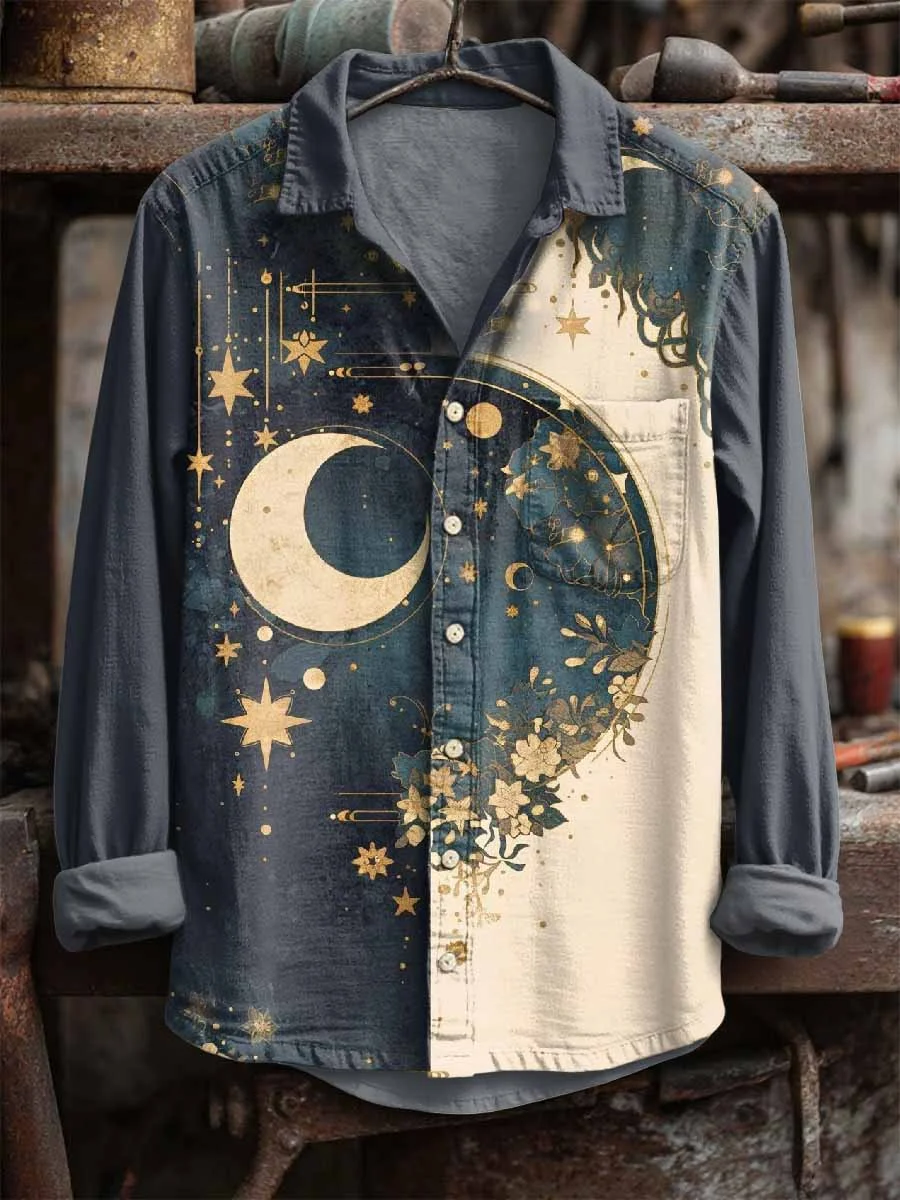 Retro Star And Moon Print Long Sleeve Shirt