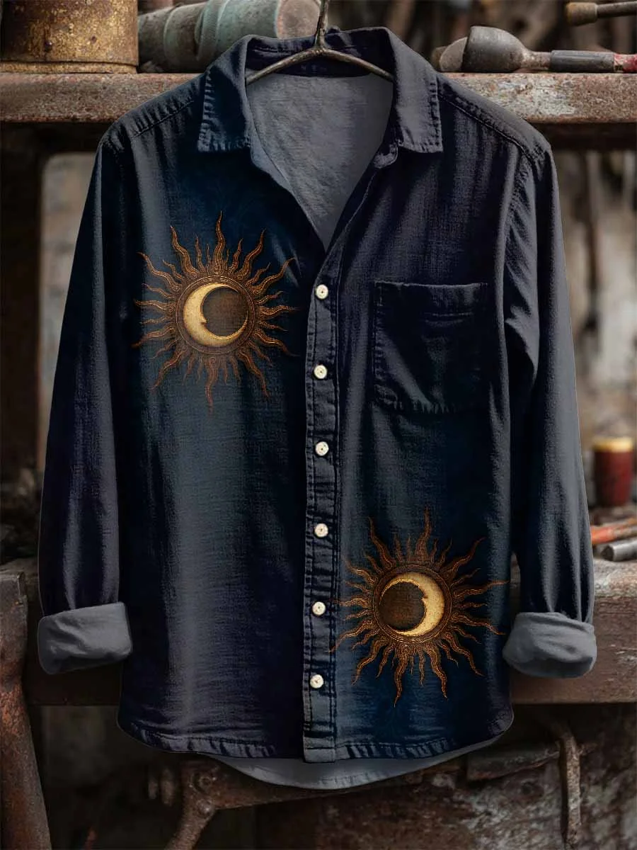 Retro Star And Moon Print Long Sleeve Shirt