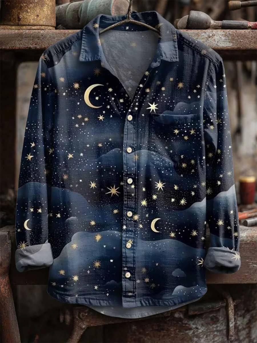 Retro Star And Moon Print Long Sleeve Shirt