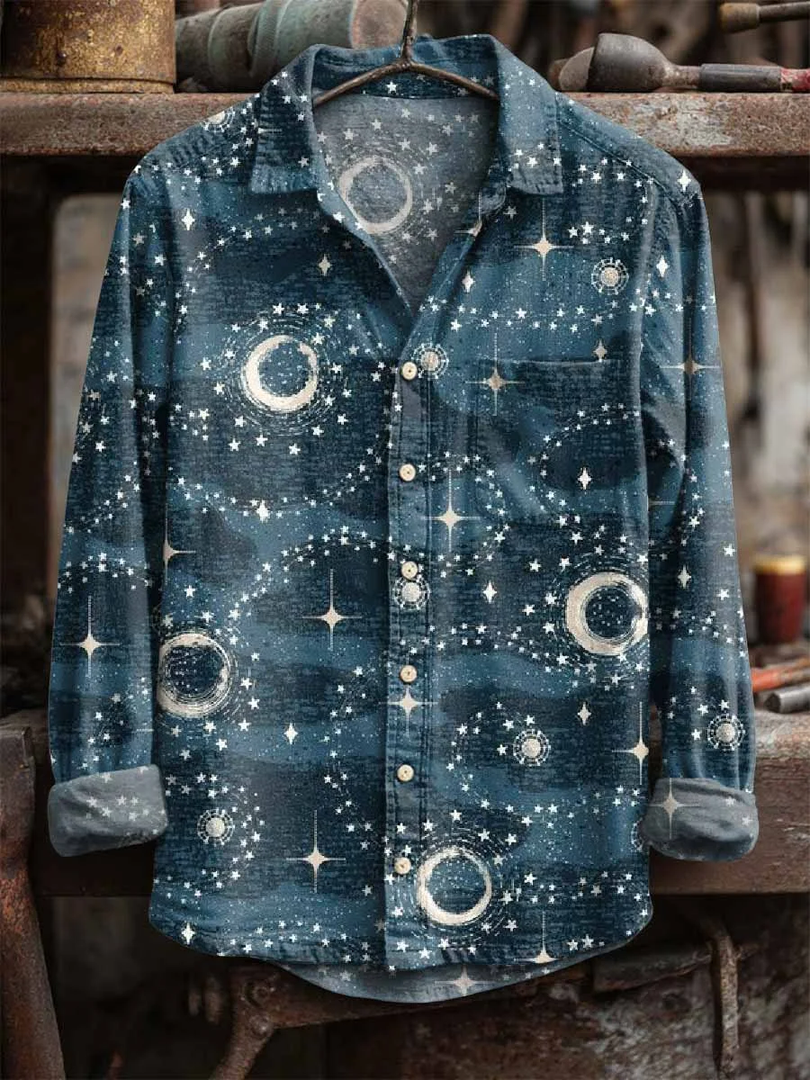 Retro Star And Moon Print Long Sleeve Shirt