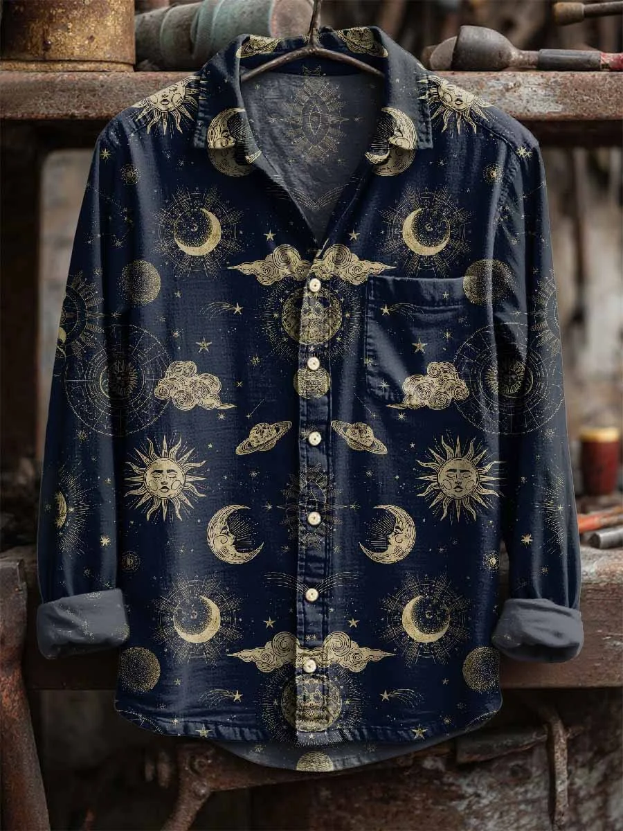 Retro Sun And Moon Print Casual Long Sleeve Shirt