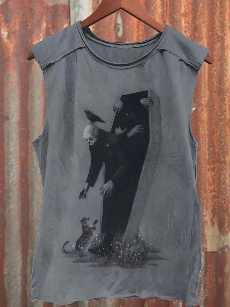 Unisex Skull Cat Print Casual Vest Top