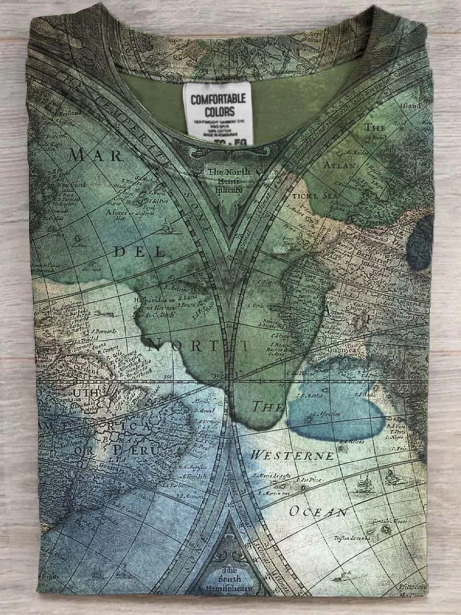 Vintage Map Print Casual Short Sleeve T-Shirt
