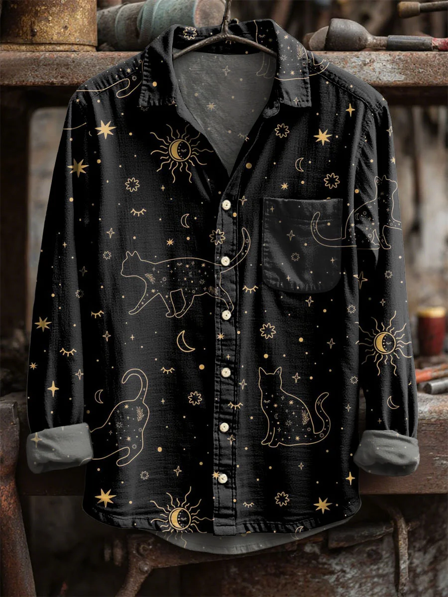 Vintage Sun And Moon Casual Long Sleeve Shirt